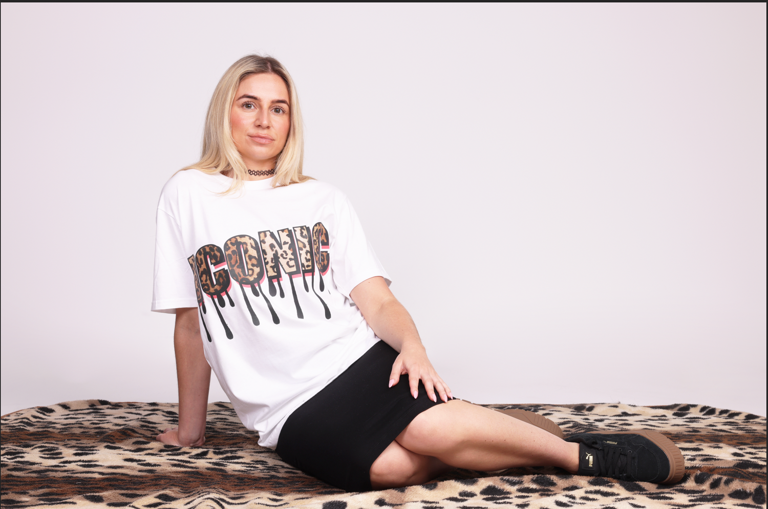 Love In Monochrome Leopard Graphic Tshirt In Black