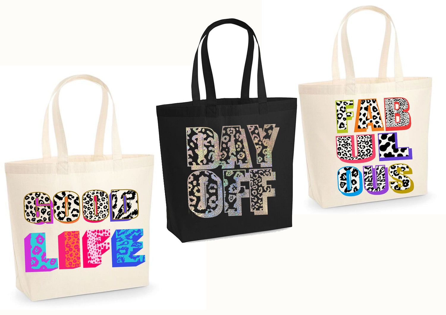 Personalised Name Black Print Tote Bag In Cream