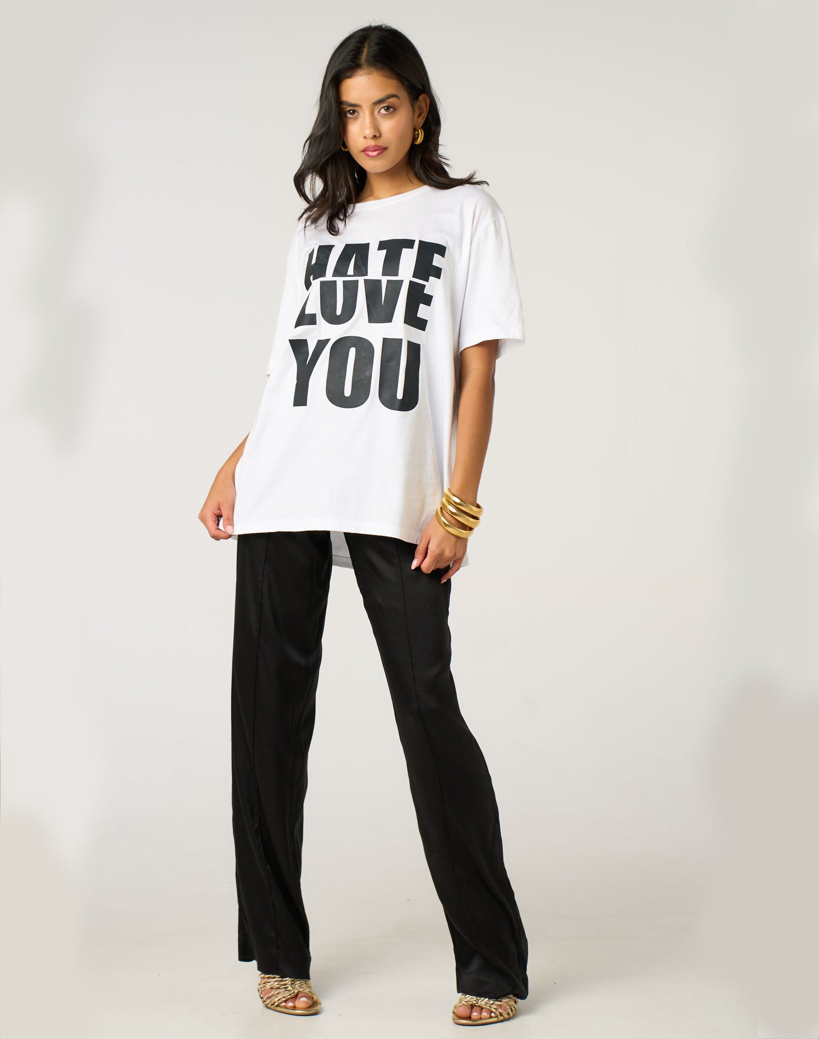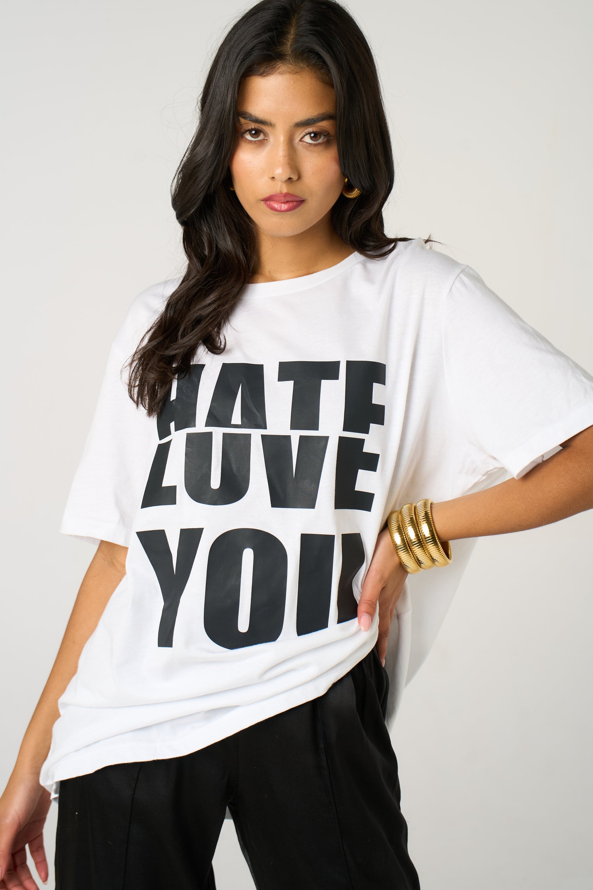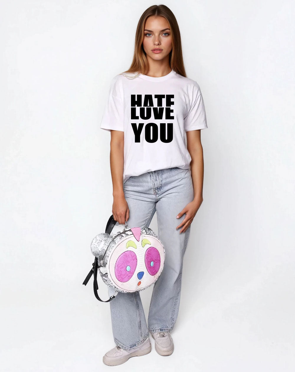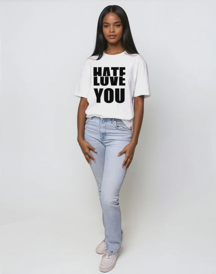 Featuring a split “Love / Hate” design in black, this tee captures the chaos of modern romance with a clean, stylish edge.