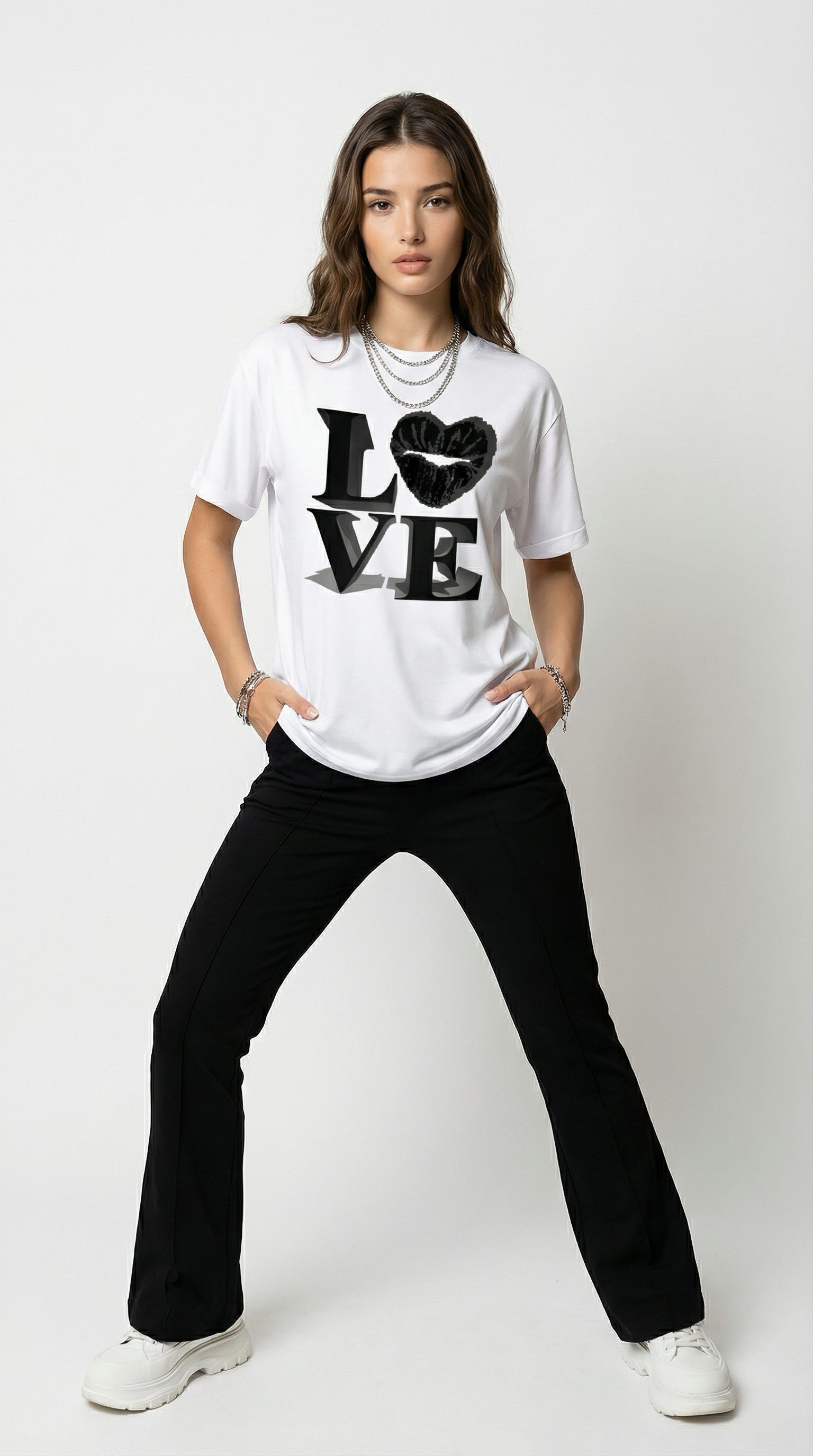 Step into a new dimension of style and comfort with our "Love Dimension Tee. Our unique 3D love text graphic pops off the fabric, creating a stunning visual effect that captivates. It's more than just a t-shirt; it's wearable art.