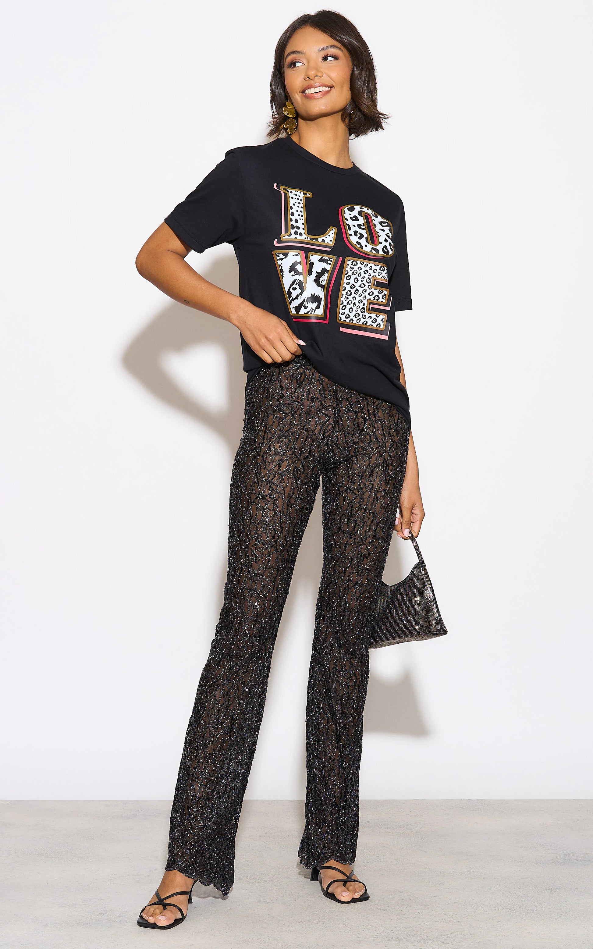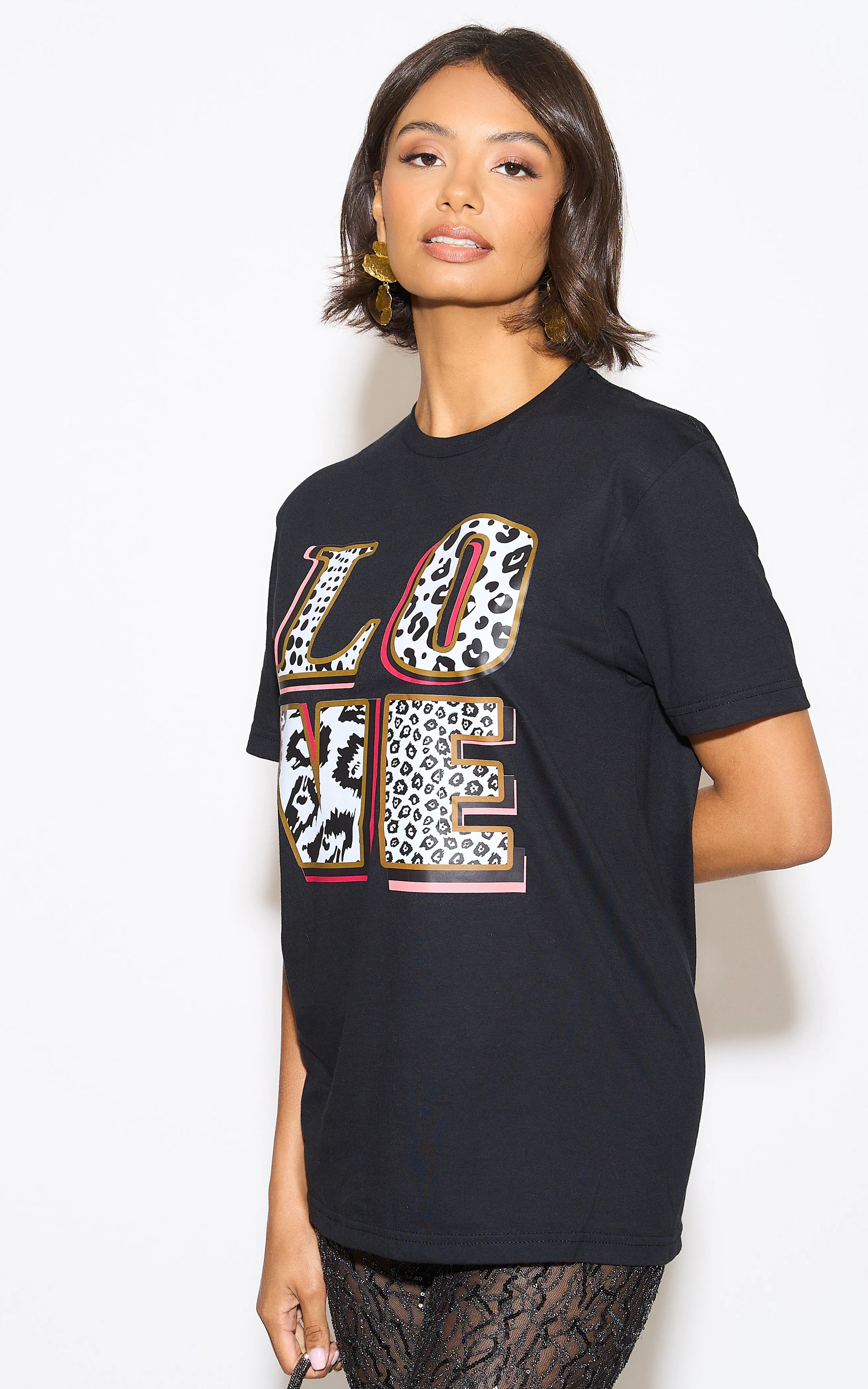 Love In Monochrome Leopard Graphic Tshirt In Black